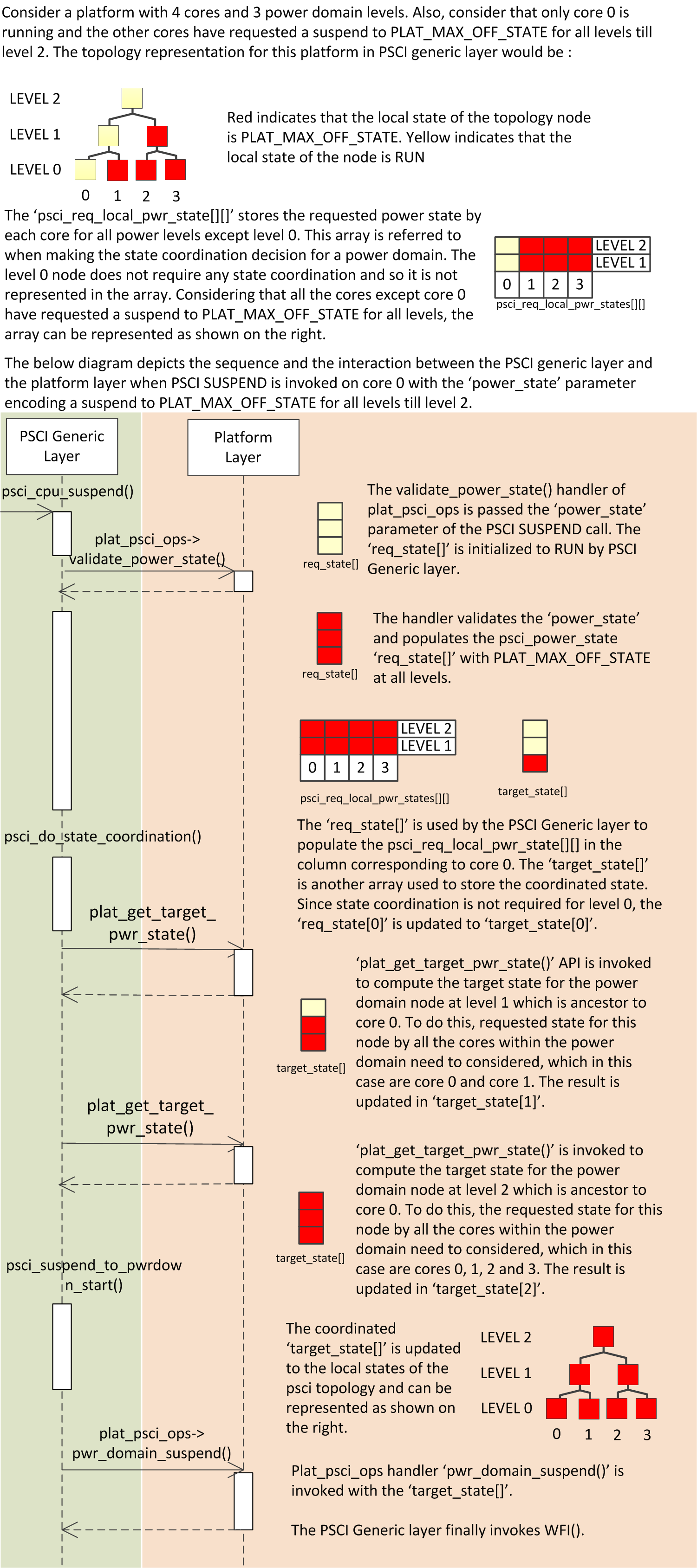 This patch adds the necessary documentation updates to porting_guide.md for the changes in the platform interface mandated as a result of the new PSCI Topology and power state management frameworks. It also adds a new document `platform-migration-guide.md` to aid the migration of existing platform ports to the new API. The patch fixes the implementation and callers of plat_is_my_cpu_primary() to use w0 as the return parameter as implied by the function signature rather than x0 which was used previously. Change-Id: Ic11e73019188c8ba2bd64c47e1729ff5acdcdd5b